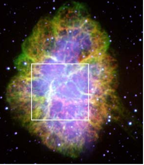 Pulsars are thought to be rotating neutron stars. They can be described by the “lighthouse model” – radiation is emitted from the poles, which “sweeps” through space as the pulsar rotates. This mechanism was first proposed by Thomas Gold.