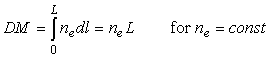 Dispersion measure is defined as the integrated column density of free electrons along the line of sight:
