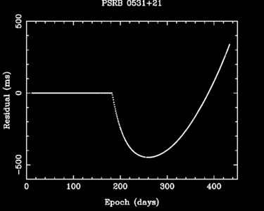 Sometimes pulsars suddenly speed up in glitches, drastically changing their periods. They are thought to be caused by starquakes. Starquakes occur in neutron stars when their crust suddenly shifts, like an earthquake on Earth.
